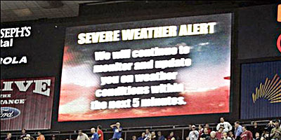 “The first need was to secure people’s safety. With the weather being what it was, and with that many people affected, they couldn’t just go outside. As people have correctly observed after the fact, the Alabama player who hit the shot to put that game into overtime probably saved a lot of headaches for people. Had the game ended in regulation, there would have been 5,000 or 10,000 people leave the facility directly into the storm. The amount of debris flying through the air at that time clearly would have led to injuries.