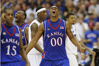 Kansas trailed, 60-51, with 2:12 left in regulation but was able to take advantage of Memphis miscues down the stretch. Chalmers made the most clutch play by delivering a three-pointer over Memphis freshman Derrick Rose to send the game into overtime.