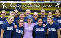 The team is seeking donations per attack attempt recorded by both teams at their final two home matches in 2008. Donations for “Swinging to Eliminate Cancer” also can be made online at www.firstgiving.com/MSUVolleyball.
