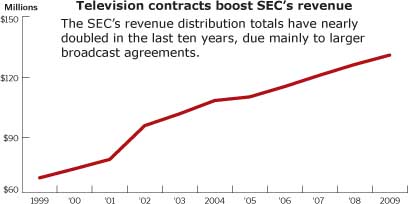 SEC announces revenue, officersThe Southeastern Conference will distribute $132.5 million to its 12 member schools as part of its 2008-09 revenue sharing plan.