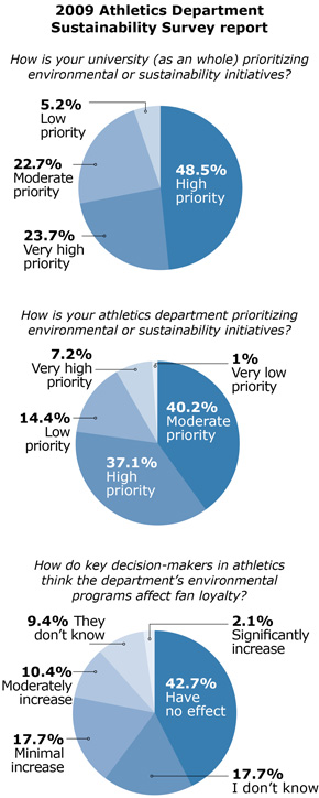 The survey found collegiate athletics departments trail professional teams in their commitment to sustainability and implementation of environmental initiatives.