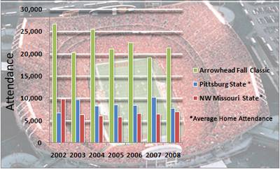 The first game was a huge success, drawing 26,965 fans. The next year, Pittsburg State and the Chiefs reached a similar agreement. That game drew a crowd of 20,342. All three parties knew they had a good thing going and signed a series of two-year contracts to keep the game at Arrowhead at least through 2010.
