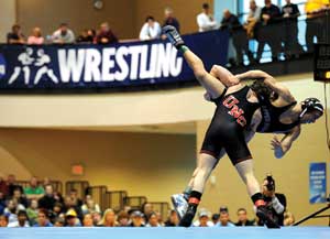 Meneely’s championship was his third, coming in a thrilling 4-2 marathon match over Travis Eggers of Upper Iowa. Meneely won with a takedown 17 seconds into the second sudden-victory period. Both wrestlers had ride-outs in the tiebreaker after a scoreless first sudden-victory session. Meneely’s victory capped a 22-0 season. He won at 149 pounds in both 2007 and 2008.
