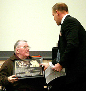 Former players on Saugestad-coached teams were among alumni and friends who attended a November 21 event to honor the coach and announce the naming of the rink in his honor.