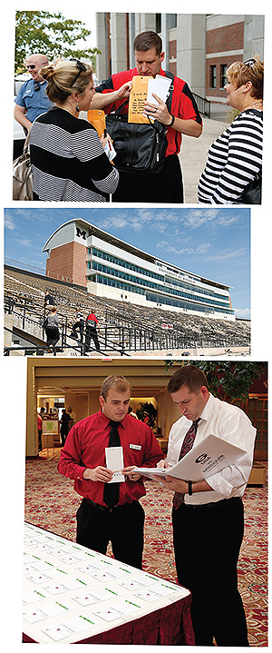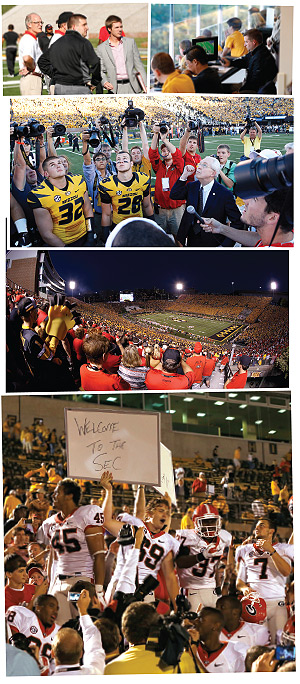 Top to bottom: Review with football ops director Brad Hutcherson. Watch SEC Commissioner Mike Slive conduct opening coin toss. Secure postgame food and transportation. Celebrate victory.