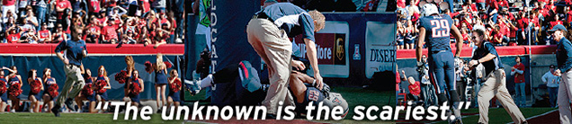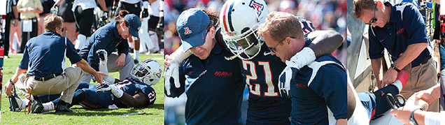 The 21-year-old lay prone behind the end zone. Any concern on Arizona head athletic trainer Randy Cohen’s face was obscured by dark sunglasses as he strode onto the field alongside one of his assistants. Usually, they’re lost amid a sea of leviathans in navy jerseys on the sideline. But in this moment, 51,236 pairs of eyes shifted to them. For a few interminable seconds, they shed obscurity and became the most important people in Arizona Stadium.