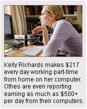 Working online has been a financial windfall for Kelly, who struggled for months to find a decent job during the struggling economy. "I lost my job shortly after the recession hit, I needed reliable income, I was not interested in the "get rich quick" scams you see all over the internet. Those are all pyramid scams or stuff where you have to sell to your friends and family. I just needed a legitimate way to earn a living for me and my family. The best part of working online is that I am always home with the kids, I save a lot of money."
