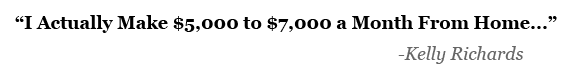 I read Kelly's blog last month and decided to feature her story in our local job report. In our phone interview she she told me her amazing story. "I actually make about $5,000-$7,000 a month using the internet. It is enough to comfortably replace my old jobs income, especially considering I only work about 10-15 hours a week from home.