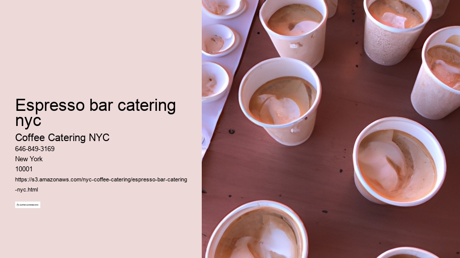 Thirdly, find a reputable local roaster who can provide fresh coffee at competitive prices. see the top espresso bar catering nyc in New York City Start by figuring out how much coffee you'll need and what type of cups or mugs you would like to serve it in. If you're looking for something more traditional, choose freshly brewed coffee made with premium beans sourced from local roasters. The caterers will also provide complimentary accompaniments such as creamers, syrups, and sugar to complete the flavor experience. coffee meetups This question will provide insight into the types of beverages catered by the particular business.