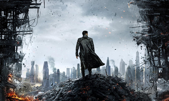 And that, of course, sums up the big question this poster poses: Who? Who is this trench-coat-wearing figure standing with his back to us, either mourning or reveling the death of Starfleet? Is it Benedict Cumberbatch's yet unnamed villain? Or is it Kirk? He kind of has new Kirk's hair? Or does he? Did Kirk get a haircut between films? Does Bones cut Kirk's hair? Or is it Spock? Argh! Why does J.J. Abrams want me to go insane?