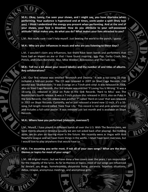 L.M.: Myself, I have played in different bands all over the U.S. With The Besmirchers, we
