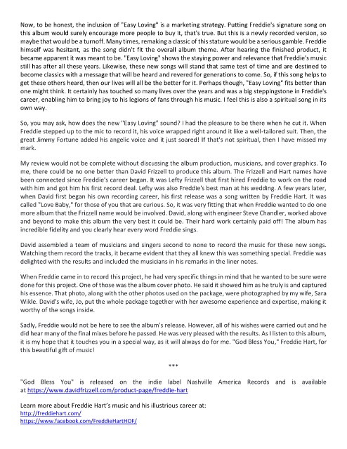 it is my hope that it touches you in a special way, as it will always do for me. "God Bless You," Freddie Hart, for