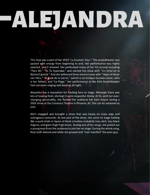 Alejandra has a reputation for flashing fans on stage. Although there was