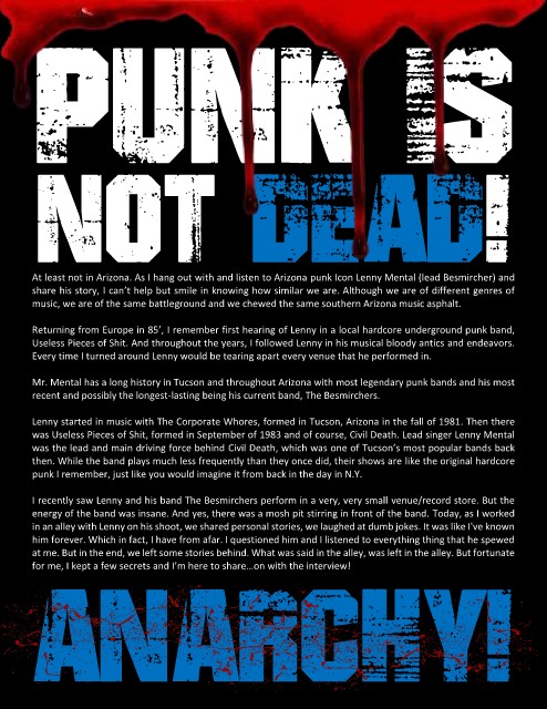 At least not in Arizona. As I hang out with and listen to Arizona punk Icon Lenny Mental (lead Besmircher) and