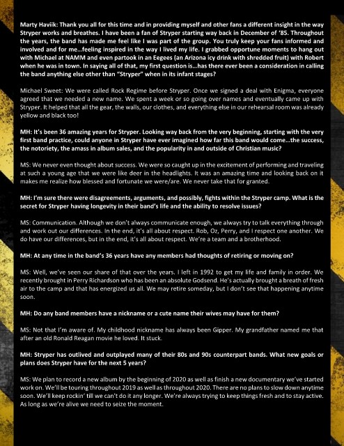 MH: It’s been 36 amazing years for Stryper. Looking way back from the very beginning, starting with the very