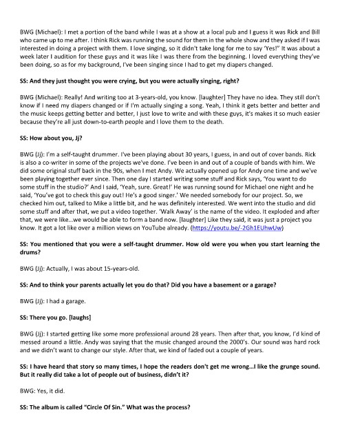 BWG (Michael): I met a portion of the band while I was at a show at a local pub and I guess it was Rick and Bill