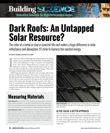 black (reflectance 0.05, emittance 0.9) is 0 and a standard white (reflectance The real potential of dark roofs is to use them as active, not