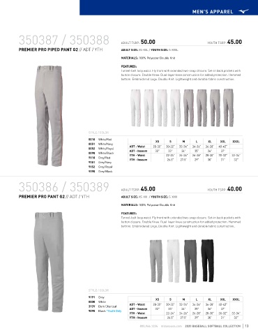 NEW PRO WOVEN BASEBALL PANT SIZE: XS-XXL PREMIER PRO PIPED PANT G2 // ADT / YTH ADULT SIZE: XS-XXL / YOUTH SIZE: S-XXXL
