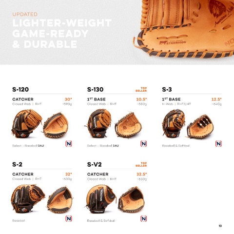 INFIELD/OUTFIELD   12"  OUTFIELD   12.5"  INFIELD/OUTFIELD   12.5"  CATCHER   32"  CATCHER   32.5"