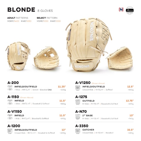 A-1275 INFIELD ~580g INFIELD/OUTFIELD ~660g CATCHER ~680g