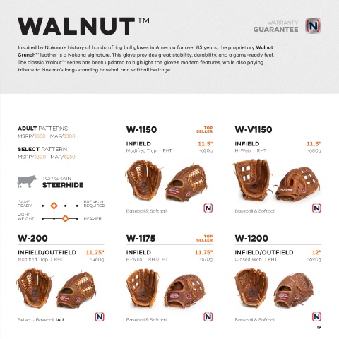 Inspired by Nokona’s history of handcrafting ball gloves in America for over 85 years, the proprietary Walnut