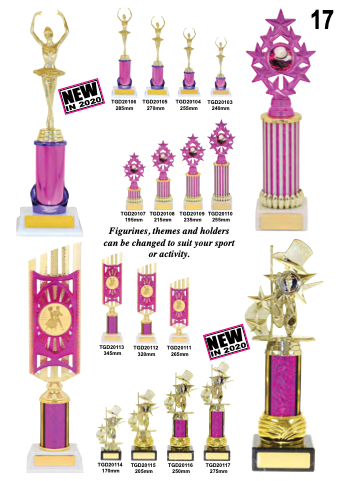 Figurines, themes and holders can be changed to suit your sport or activity.