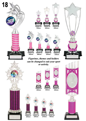 Figurines, themes and holders can be changed to suit your sport or activity.