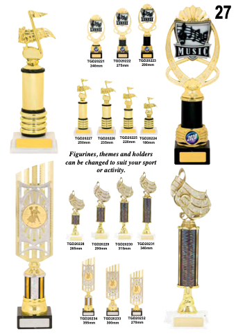 Figurines, themes and holders can be changed to suit your sport or activity.