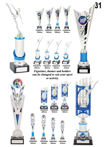 Figurines, themes and holders can be changed to suit your sport or activity.