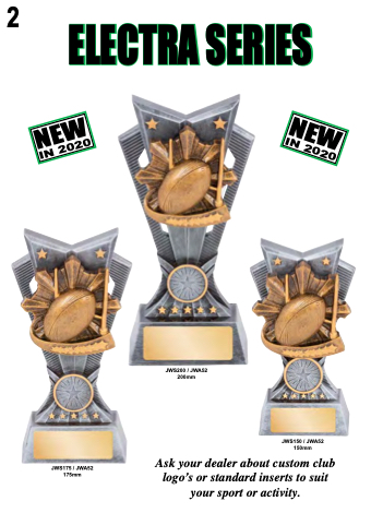 2 ELECTRA SERIES JWS175 / JWA52 175mm Ask your dealer about custom club logo’s or standard inserts to suit your sport or activity. JWS200 / JWA52 200mm JWS150 / JWA52 150mm NEW IN 2020 NEW IN 2020