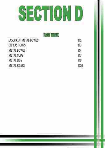 SECTIOND PAGEINDEX LASER CUT METAL BOWLS DIE CAST CUPS METAL BOWLS METAL CUPS METAL LIDS METAL RISERS D1 D3 D4 D7 D9 D10