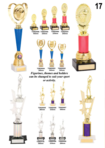 Figurines, themes and holders can be changed to suit your sport or activity.