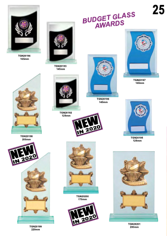 25 25 TGN20194 165mm TGN20193 145mm TGN20196 145mm TGN20197 165mm TGN20192 125mm TGN20198 200mm TGN20195 125mm TGN20200 170mm TGN20199 220mm TGN20201 200mm BUDGET GLASS AWARDS NEW NEW IN 2020 NEW IN 2020 IN 2020