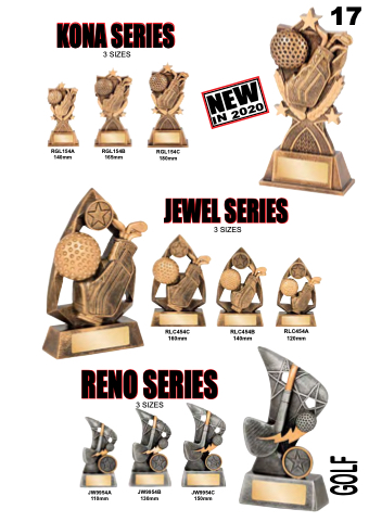 KONA SERIES 17 3 SIZES RGL154A 140mm RGL154B 165mm RGL154C 180mm JEWEL SERIES 3 SIZES RLC454C 160mm RLC454B 140mm RLC454A 120mm RENO SERIES 3 SIZES JW9954A JW9954B JW9954C 110mm 130mm 150mm NEW IN 2020 GOLF