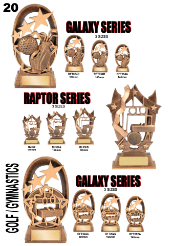 20 GALAXY SERIES RFT054C 180mm 3 SIZES RFT054B 165mm RFT054A 145mm RAPTOR SERIES 3 SIZES RL350 RL350A 140mm 160mm RL350B 185mm GALAXY SERIES 3 SIZES RFT092C RFT092B 180mm 165mm RFT092A 145mm GOLF / GYMNASTICS