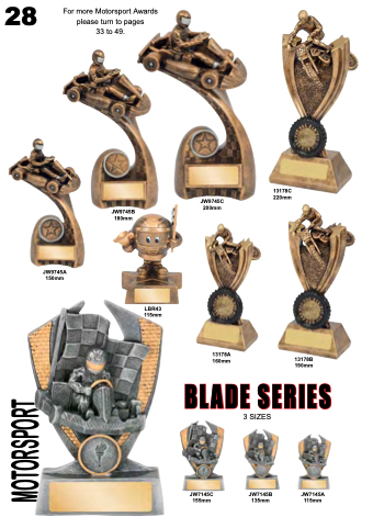 28 For more Motorsport Awards please turn to pages 33 to 49. JW9745C 200mm 13178C 220mm JW9745A 150mm JW9745B 180mm LBR43 115mm 13178A 160mm 13178B 190mm BLADE SERIES 3 SIZES JW7145C JW7145B JW7145A 155mm 135mm 115mm MOTORSPORT