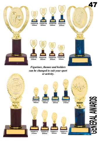 Figurines, themes and holders can be changed to suit your sport or activity.