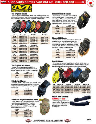 on the heel, inside and outside edges of the palm Size Yellow Part No. Red Part No. Blue Part No. Black Part No.