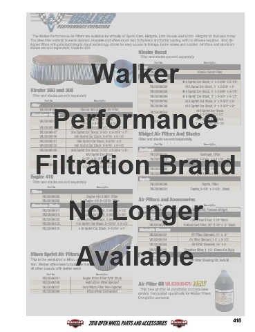 The Walker Performance Air Filters are available for virtually all Sprint Cars, Midgets, Late Models and Micro- Midgets on the track today.