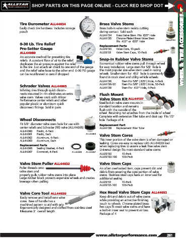 Pre-Setter Gauge ALL99150 ..... Valve Core, 10-pack WHEEL & TIRE ACCESSORIES