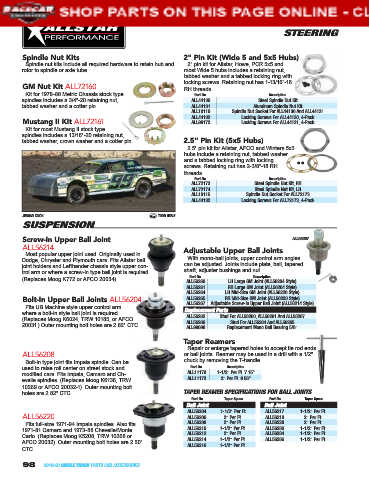 Dodge, Chrysler and Plymouth cars. Fits Allstar ball With mono-ball joints, upper control arm angles