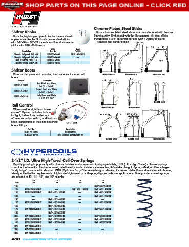 with 3/8"-16 or 3/8"-24 threads and Hurst alu mi num T-Handles and shifter knobs.