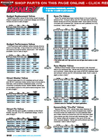 PDFKLQHG FRPEXVWLRQ IDFHV 6WUHHW 0DVWHU YDOYHV DUH MAN11860-8 Intake 1.940" .3415" Stock