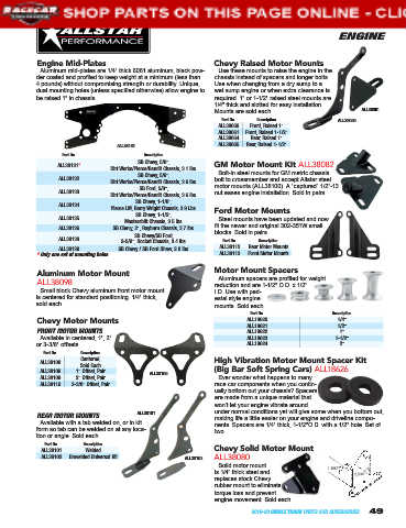 ALL38139 SB Chevy / SB Ford Shaw, 2.8 lbs. ALL38112 Rear Motor Mounts
