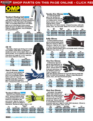 mechanics, gloves are offered in an elastic wrist band. Meet FIA 8856-2000 standards. Offered in