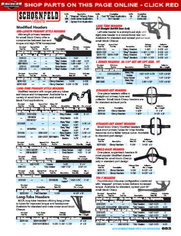 SCH1105 — — Chevy Headers 1-5/8" 3" SCH1176V — “Step” Headers 1-3/4"-1-7/8" 3-1/2" x 9"
