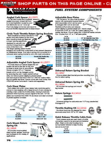 XQLYHUVDO UHWXUQ VSULQJ EUDFNHW WR ZRUN ZLWK PRVW FDUEXUHWRUV ALL26183 1.100" Inserts ALL26063 1.100" Inserts