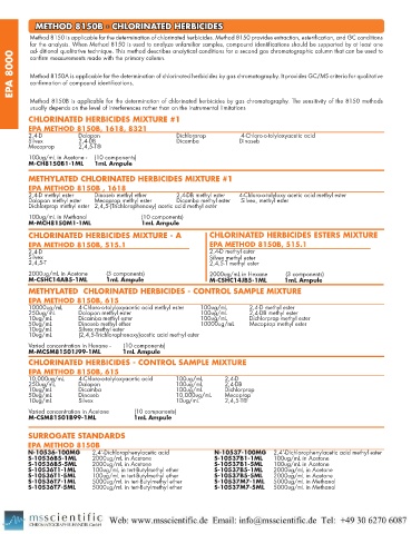 Method 8150 is applicable for the determination of chlorinated herbicides. Method 8150 provides extraction, esterification, and GC conditions