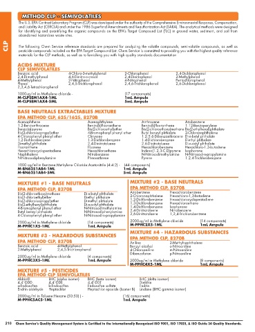 CLP The following Chem Service reference standards are prepared for analyzing the volatile compounds, semi-volatile compounds, as well as
