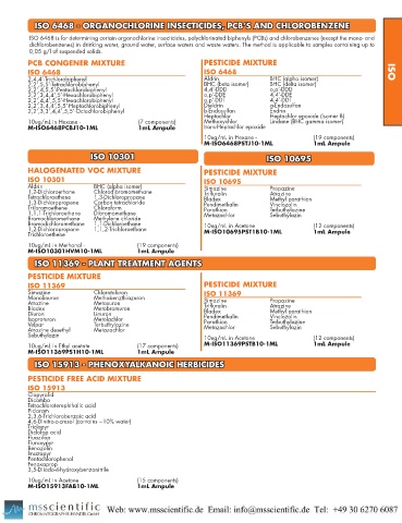 ISO 6468 is for determining certain organochlorine insecticides, polychlorinated biphenyls (PCBs) and chlorobenzenes (except the mono- and
